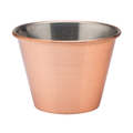 The 4oz Copper Plated Sauce Cup offers refined elegance for discerning hosts and professional caterers. Its compact size makes it perfect for portion-controlled servings of sauces, oils, and accompaniments without compromising on style. Crafted from the Tazzy collection, this piece features premium copper plating that resists tarnishing while adding sophisticated warmth to any table setting. Whether for upscale dining, catering events, or everyday entertaining, this sauce cup delivers both aesthetic appeal and reliable performance.