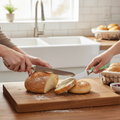 This 8" bread knife features a high-quality stainless steel blade designed for precise slicing, dicing, and crushing. Its ergonomic handle ensures comfortable grip and control during use. Optimized for use with wooden or plastic cutting boards, it requires hand washing and thorough drying to maintain its sharpness and durability