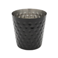 The 8.5cm Black Chip Cup from the Tazzy collection offers timeless versatility for contemporary food service. Its sleek black finish provides a striking contrast that showcases the contents while the hammered surface adds tactile sophistication and visual dimension. Built for the demands of professional kitchens and catering environments, this cup delivers reliable performance without sacrificing style. Whether presenting chips, fries, or appetizers, this piece seamlessly complements modern table settings with understated elegance.