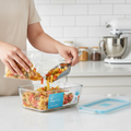 This 1000ml airlock glass container is versatile and safe for use in the oven, microwave, dishwasher, and fridge. Keep your food fresh and easily accessible with an airtight lid. Designed for convenience and durability, this container is a must-have for any kitchen.