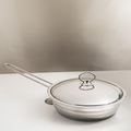This 2.5 Litre frying pan with a lid is the ideal kitchen essential. Constructed with stainless steel and aluminium sandwich base, it ensures even heat distribution and enhanced energy efficiency. Heat resistant and dishwasher-safe, this pan's thoughtful design makes for an effortless cooking experience.
