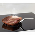 The San Ignacio 28cm grill pan features a 4-layer construction, including copper, diamond, sapphire, and titanium, for even and quick heat distribution. The coating is scratch-resistant, non-stick, and durable, making it suitable for all heat sources. Save energy while cooking with this professional-grade pan.