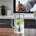 The 35cm Black Bar Spoon features a full twisted design with an elegant tear drop end, making it an essential tool for any serious bartender or home mixologist. Crafted with Black PVD coating for durability and a sleek finish, this barware utensil excels at stirring, layering, and measuring cocktails with precision. The extended length provides optimal reach in tall mixing glasses, while the twisted shaft offers superior grip control during preparation. Perfect for professional bars or curated home collections, this versatile spoon delivers both functionality and refined aesthetics to elevate your cocktail crafting experience.