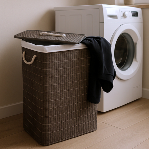 72 Litre Bamboo Brown Laundry Bin With Lid