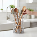 The Round Chrome Cutlery Holder combines sleek design with practical functionality, providing an efficient storage solution for your kitchen utensils. Its polished chrome finish offers durability and resistance to tarnish, ensuring long-lasting use while adding a contemporary touch to your kitchenware. Keep your cutlery organized and within easy reach, enhancing both workspace efficiency and countertop style.