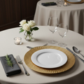 This Gold Underplate is a stunning tableware piece that will elevate your dining experience. Crafted with a unique wavy design and rough finish, it will make your table decorations stand out. Make a lasting impression with this one-of-a-kind plate.