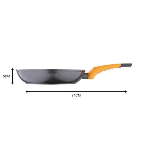 The 24cm Forged Frypan by San Ignacio features Turbo induction technology and a soft touch handle, making it suitable for all heat sources. Please note, this product is not dishwasher safe for optimal durability.