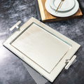 This stainless steel silver tray with handles offers durability and elegant functionality for serving and presentation. Crafted from high-quality stainless steel, it resists tarnish and maintains its shine with minimal upkeep. The sturdy handles ensure secure grip and ease of transport, making it ideal for both casual and formal settings. Its versatile design suits a range of tableware and serve-ware needs.
